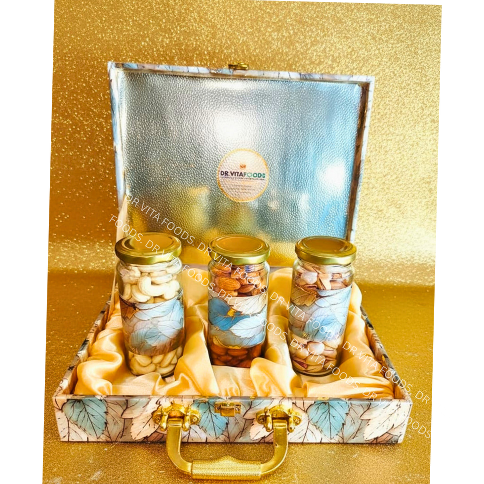 Healthy & Luxurious Indulgence: Offer a gift that combines health benefits with refined indulgence. The assorted dry fruits are packed with essential nutrients and healthy fats, while the sophisticated presentation ensures a premium feel—a wholesome treat that truly impresses.